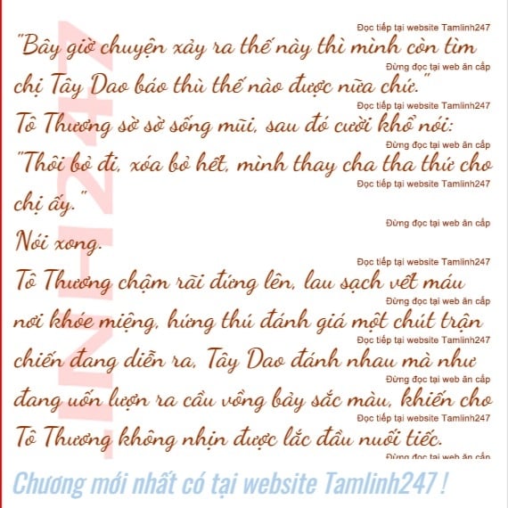Tô Thương đang nhìn Lâm Uyên chống trả lại Tây Dao, anh khẽ nở một nụ cười rồi biểu cảm vô cùng quái dị đứng lên: "Cha mình từng nói, năm đó ông ta và chị Tây Dao là tình địch của nhau, cùng tranh giành mẹ của mình...Lúc đó mình còn nghĩ, sớm muộn gì có một ngày mình cũng sẽ giúp cha mình báo thù rửa hận."