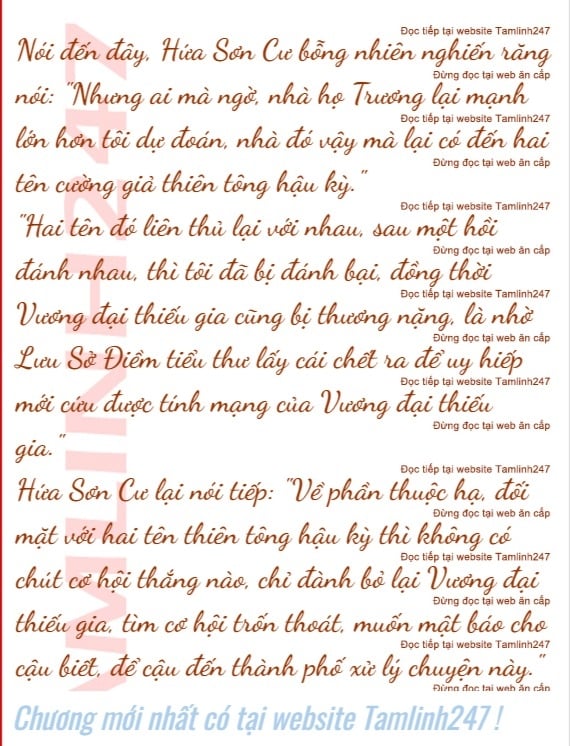 Ở đầu giây bên kia, Hứa Sơn Cư ho lên một tiếng, sau đó rủ rỉ nói: "Là như vậy, mấy ngày trước tôi và Vương đại thiếu gia sau khi đến thành phố thì nhận được tin tức nhà họ Lưu muốn gả con gái Lưu Sở Điềm của họ cho nhà họ Trương ở trong thành phố."