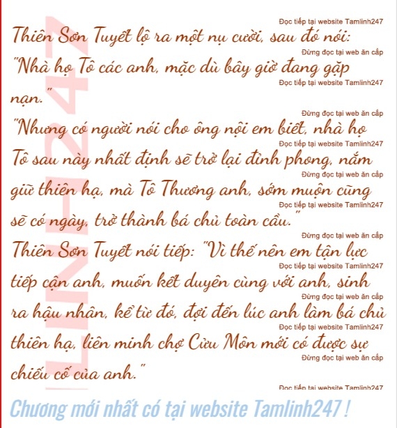 Thiên Sơn Tuyết do dự một lúc, rồi nói: "Tô Thương, thật ra ngay từ đầu tiếp cận anh, chính là mục đích của em."