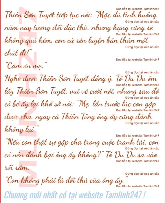 Thiên Sơn Tuyết bỗng nhiên nở một nụ cười, cô ta nói: “Có phải con đăng ký tham gia Bách Tông hội võ rồi đúng không, nói không chừng con có thể làm đối thủ của cha con đấy.”
