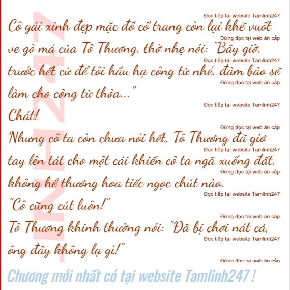 m thanh giòn giã vang lên trong phòng, cô gái xinh đẹp mặc đồ cổ trang này nhất thời ngây ngẩn cả người, vẻ mặt oan ức nói: "Công tử, sao ngài lại đánh tôi?"
