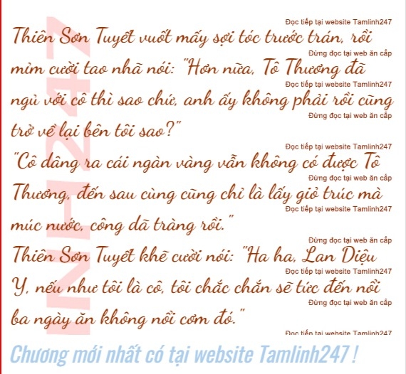 Thiên Sơn Tuyết nghe vậy, vẫn mỉm cười như cũ: "Lan Diệu Y, cô cũng biết Tô Thương là người đàn ông của tôi à."