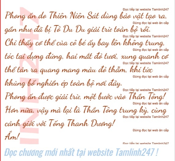 Thế nhưng mà, dù sao Tô Du Du cũng chỉ là một đứa trẻ, cơ thế yếu đuối không khống chế được lượng chân khí dồi dào. Bởi vậy cho nên Thiên Niên Sát đã mượn sức mạnh của bảo vật để phong ấn chân khí trong cơ thể cô bé ấy, trừ khi gặp phải nguy hiểm đến tính mạng, nếu không phong ấn đó sẽ không giải trừ.