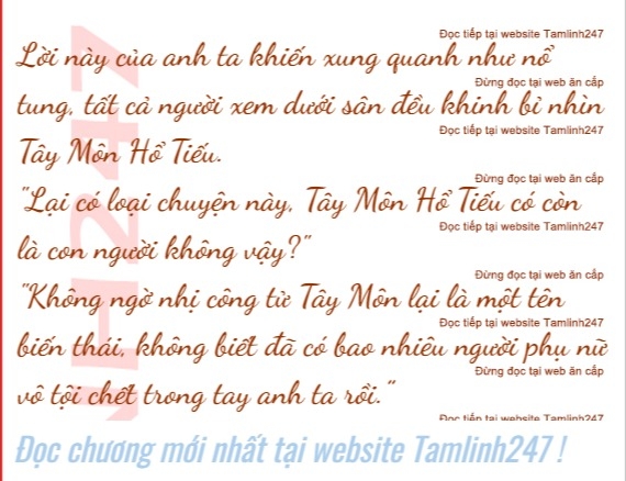 "Tao đã nói với mày rồi, tao chỉ làm chị mày bị thương thôi, còn tại sao cô ta lại mất tích thì chẳng liên quan gì đến tao cả, sao mày cứ bám lấy tao mãi thế?" Tây Môn Hổ Tiếu nhíu mày.