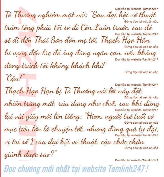 Tô Thương ngẩng đầu nhìn, hai người nhìn nhau từ xa: "Vị trí số một tại đại hội võ thuật, tôi nhất định giành được, có điều..."