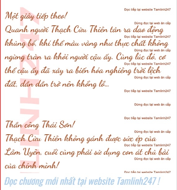 Thạch Cửu Thiên trên lôi đài nghe thấy ông nội nhắc nhở, liền lau vết máu trên mặt đi, nhìn chằm chằm Lâm Uyên, chậm rãi nói ra bốn chữ: "Thái Sơn… Thần Công!"