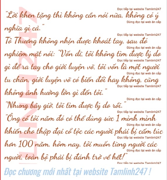 "Thực không dám giấu, thập đại cổ tộc chúng tôi sở dĩ nhiều năm như vậy cũng không xuất thế là vì các lão tổ trong nhà đã thua dưới tay của tiền bối Tô Vô Kỵ, bị ép cho phải chấp nhận yêu cầu của tiền bối Tô Vô Kỵ."