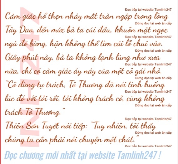 Nghe được câu Thiên Sơn Tuyết là người phụ nữ của Tô Thương, còn sinh hai đứa nhỏ cho Tô Thương, Tây Dao lập tức không nói gì nữa, thậm chí có chút xấu hổ.