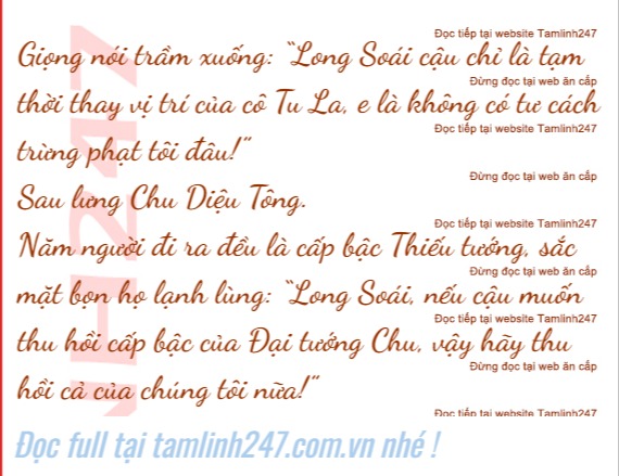 “Dù là cô Tu La có mặt ở đây cũng sẽ không nói một câu liền thu hồi cấp bậc, tước bỏ quân tịch của tôi”.